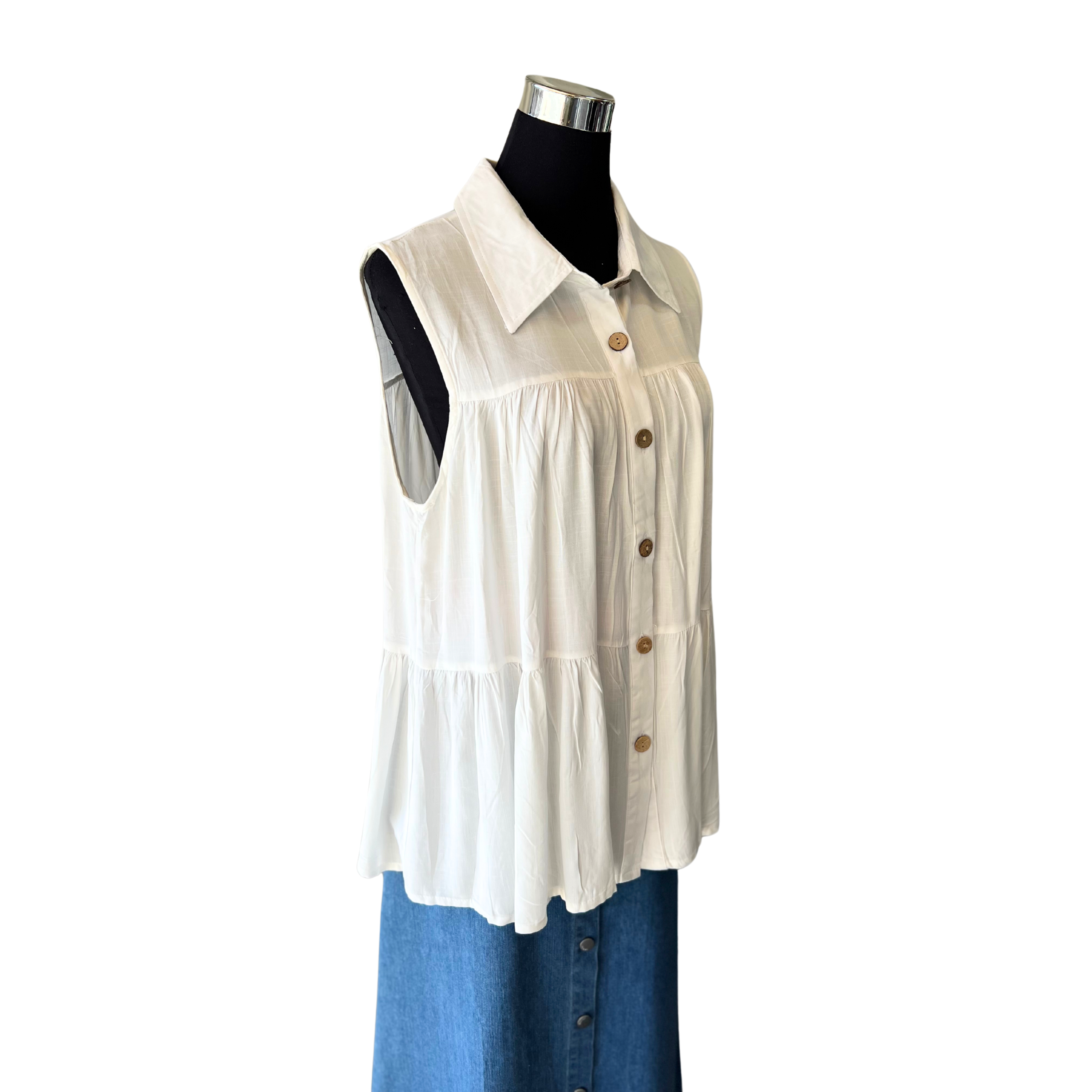 ¡Descubre la versatilidad y estilo de nuestra Blusa Evasé Camisera Sin Mangas! Perfecta para cualquier ocasión, su holgado y elegante diseños te harán destacar. Hecha con materiales de alta calidad, te brindará comodidad y durabilidad.