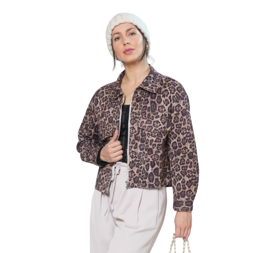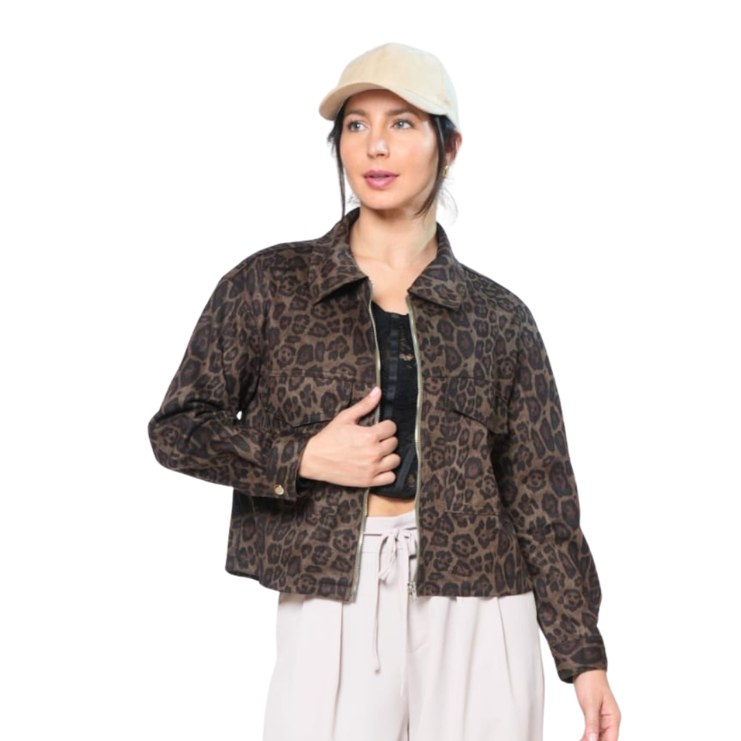 Esta chaqueta de gamuza liviana con estampado animal es la prenda perfecta para destacar con estilo y comodidad. Su diseño moderno y ligero te permite lucir a la moda sin sacrificar movilidad, ideal para cualquier ocasión. Añade un toque audaz y sofisticado a tu outfit con esta pieza versátil que combina fácilmente con tus prendas favoritas.