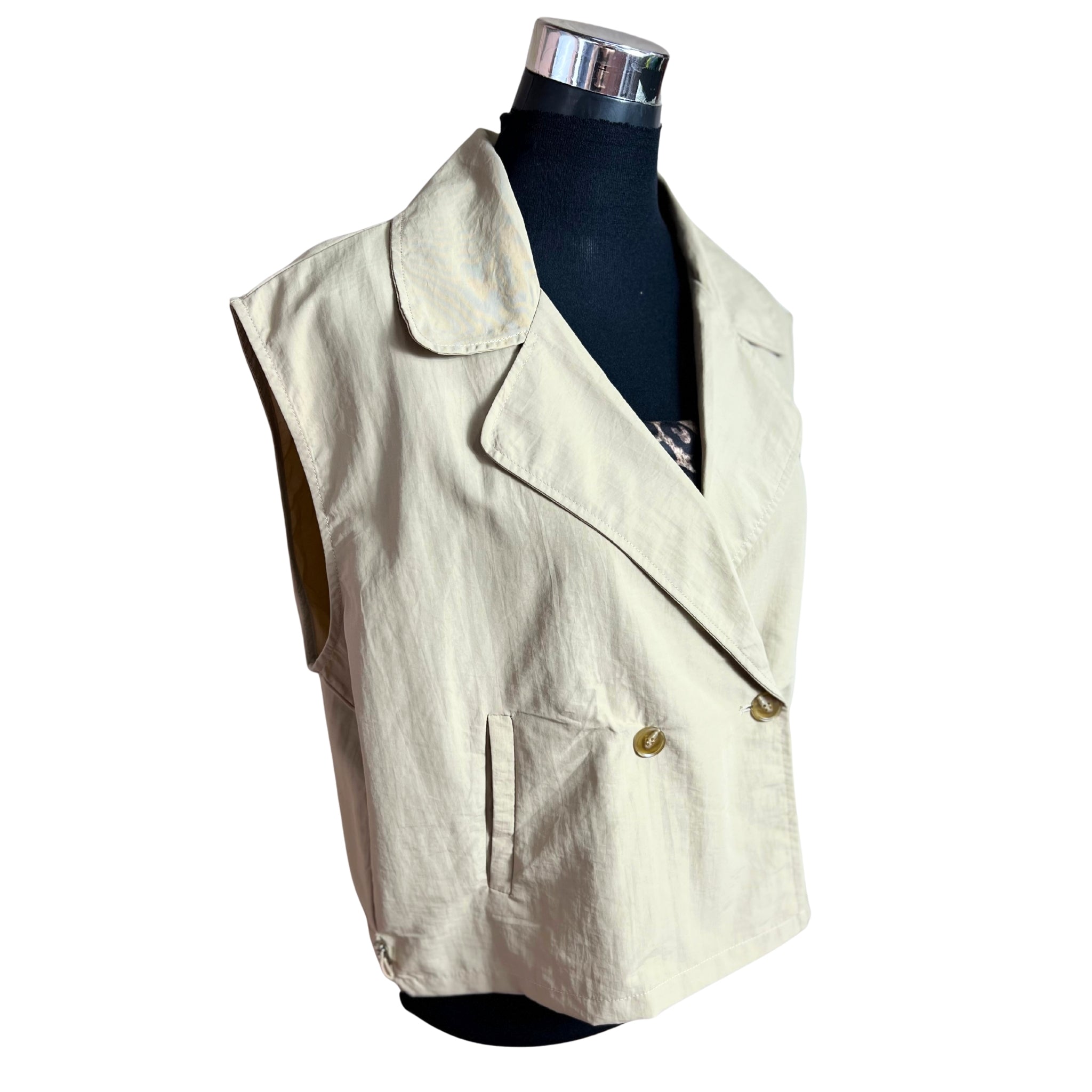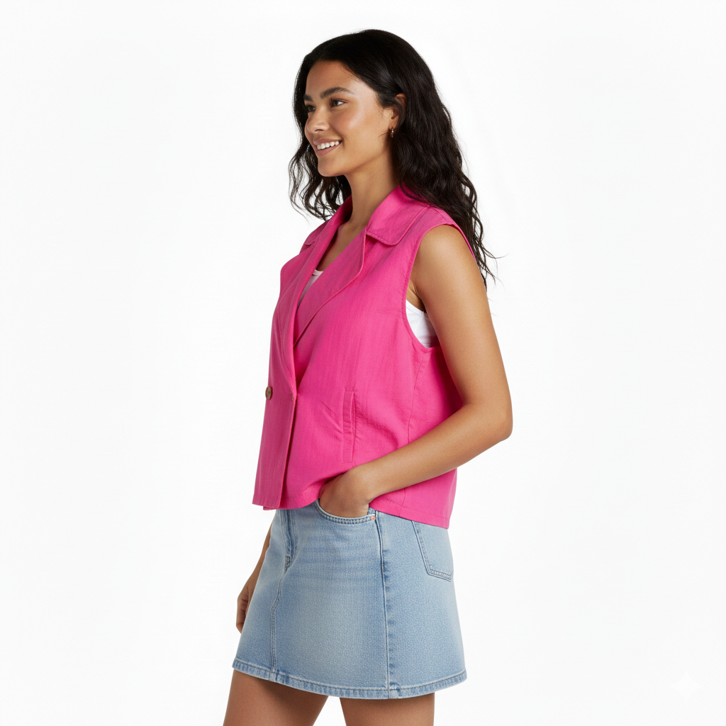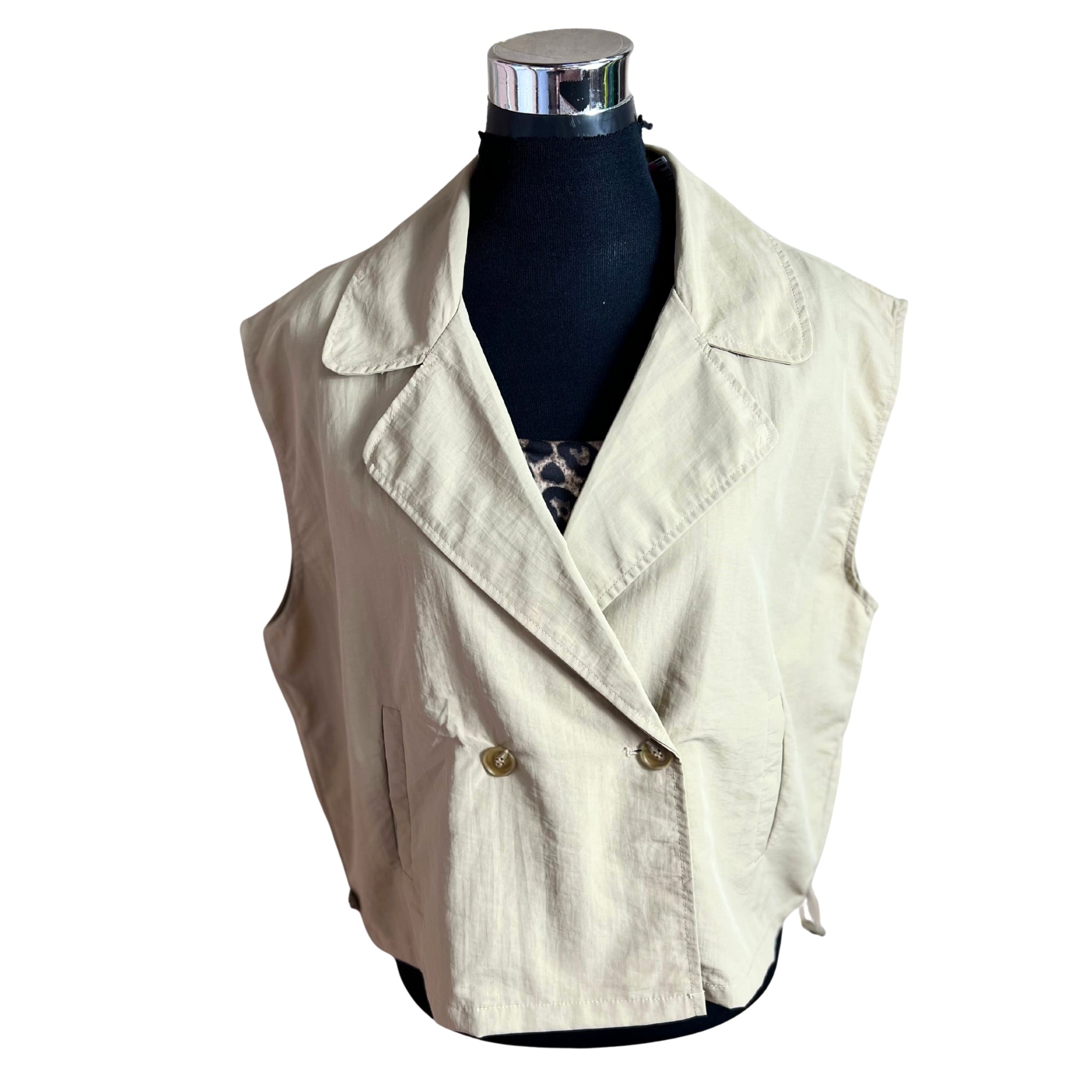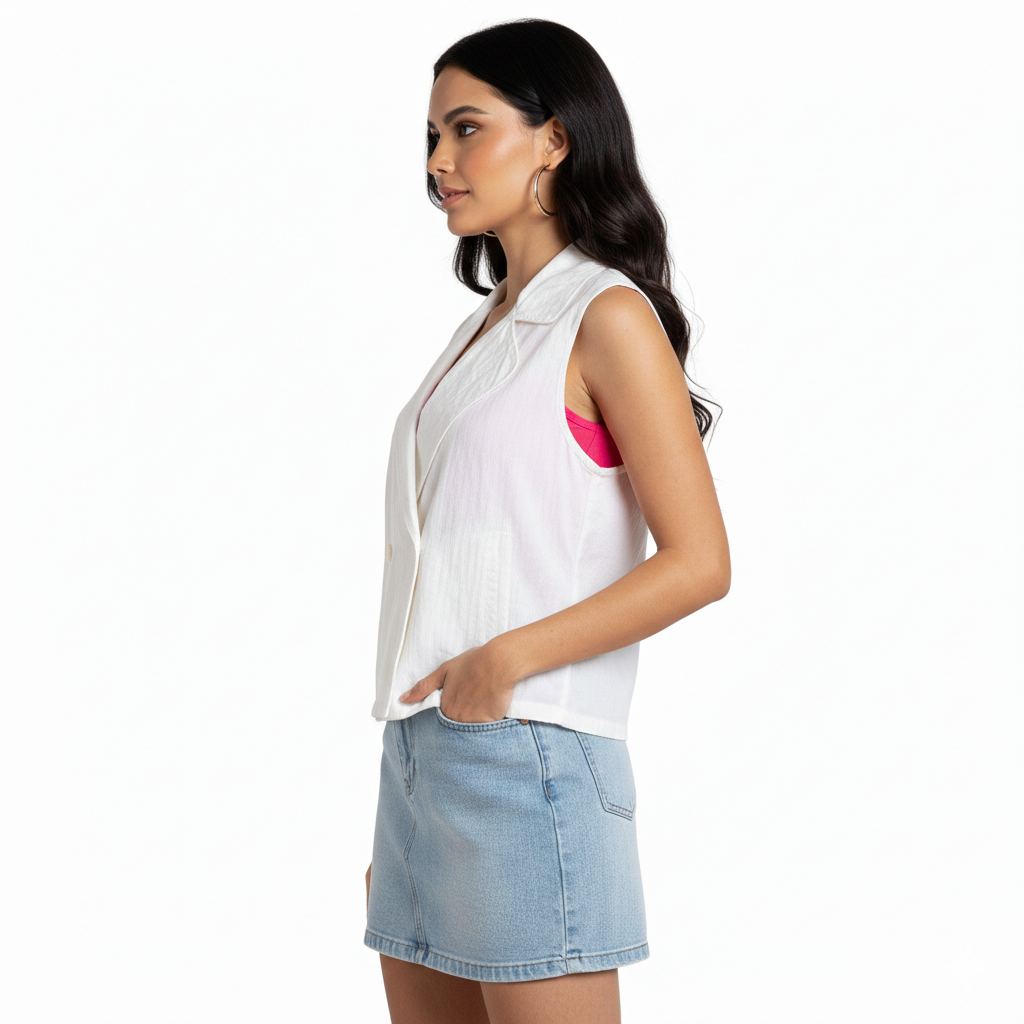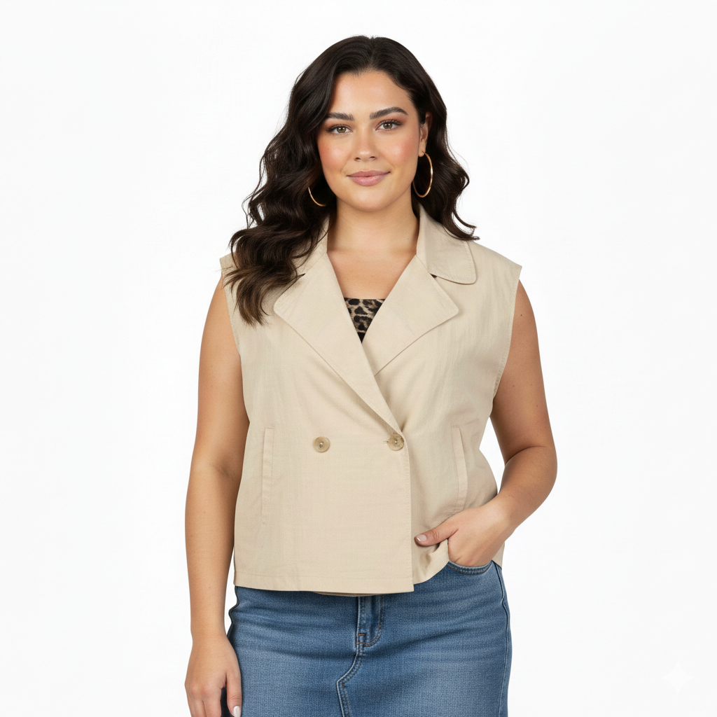 Descubre la elegancia minimalista con esta chaqueta oversize sin mangas que redefine tu estilo. Su corte cruzado proporciona una silueta sofisticada y versátil, mientras que el reductor en la cintura marca tu figura de manera favorecedora. Perfecta para capas sobre cualquier outfit, combina comodidad con un toque de distinción. Una pieza imprescindible que eleva cualquier look, desde casual hasta formal. Invierte en una prenda que trasciende tendencias y se adapta a tu personalidad única.