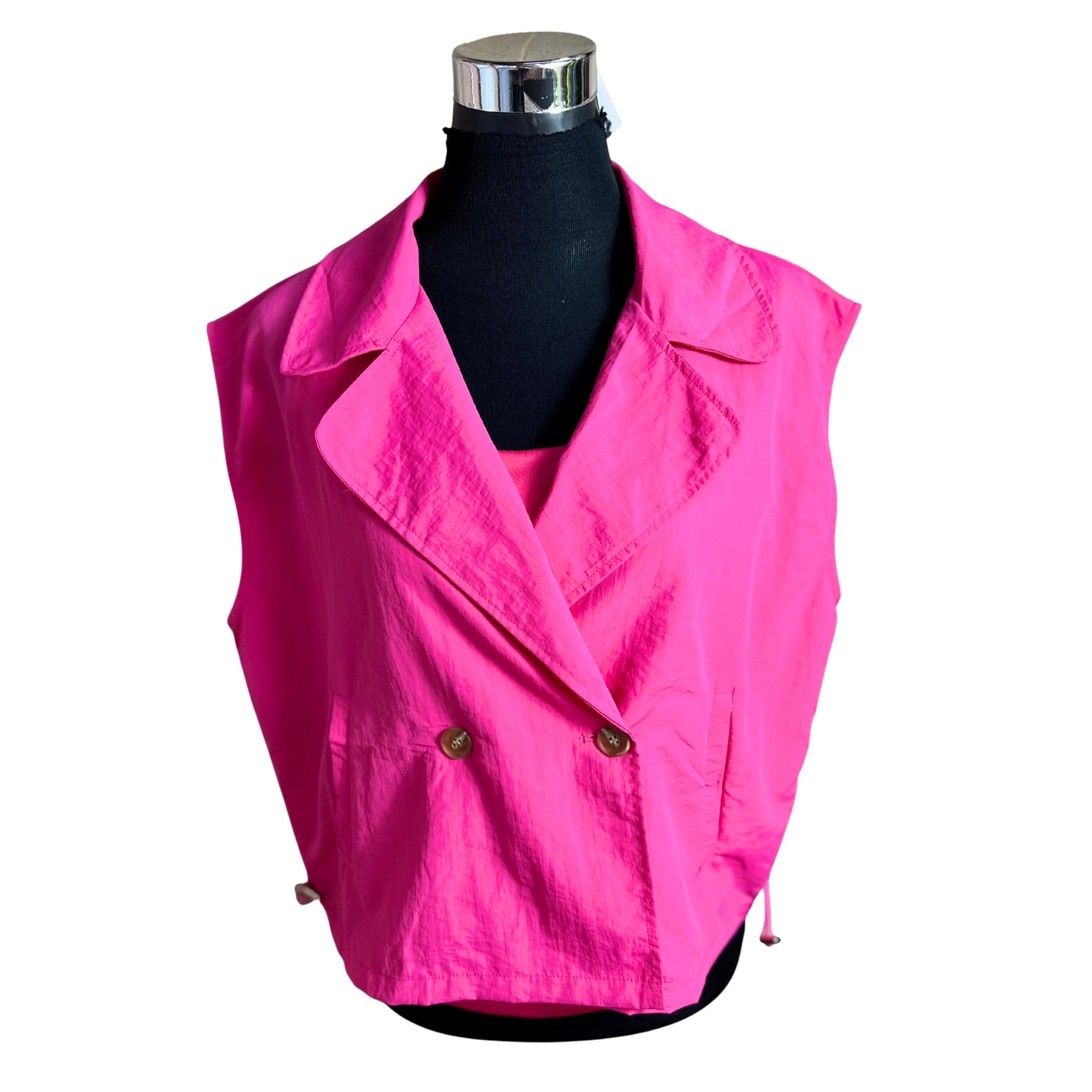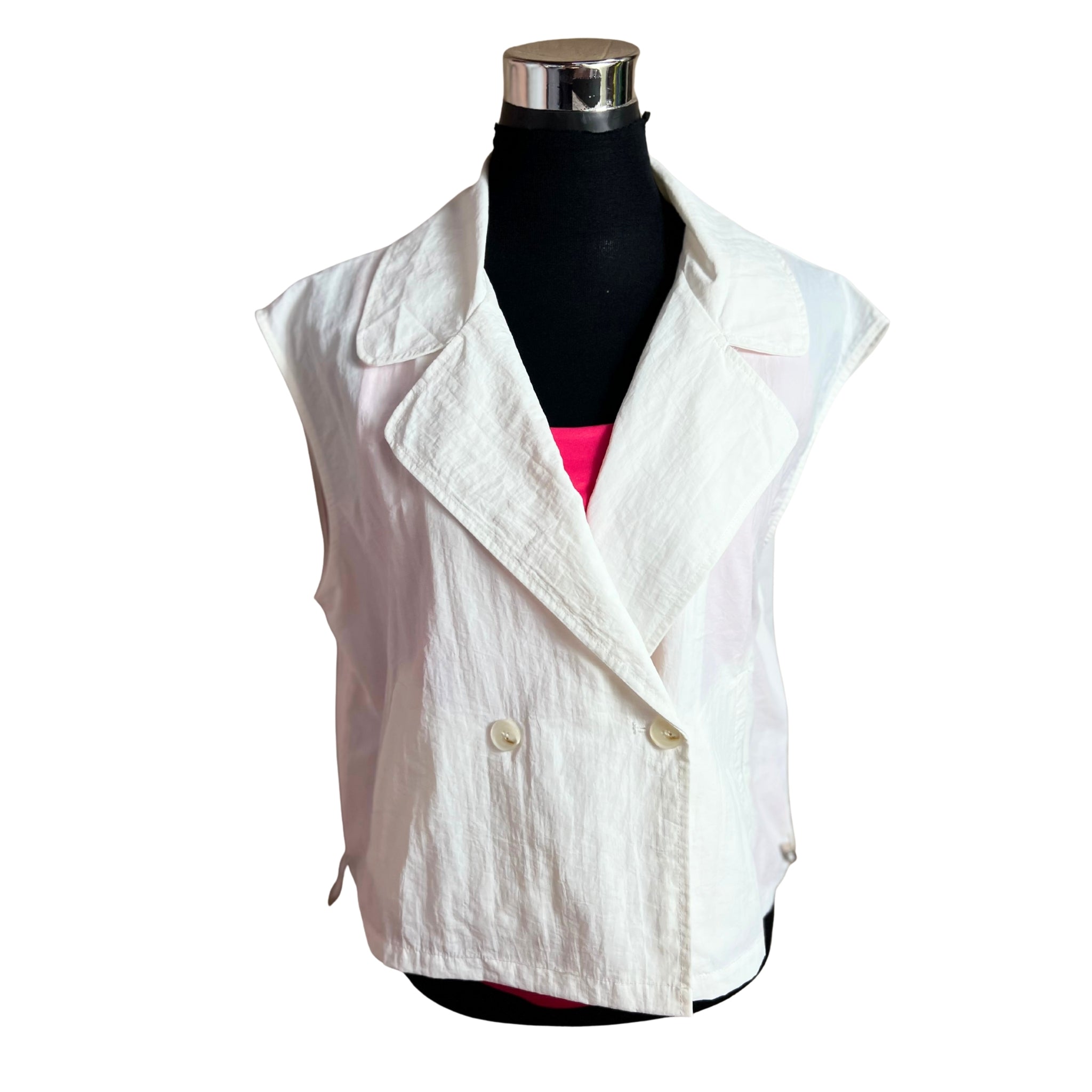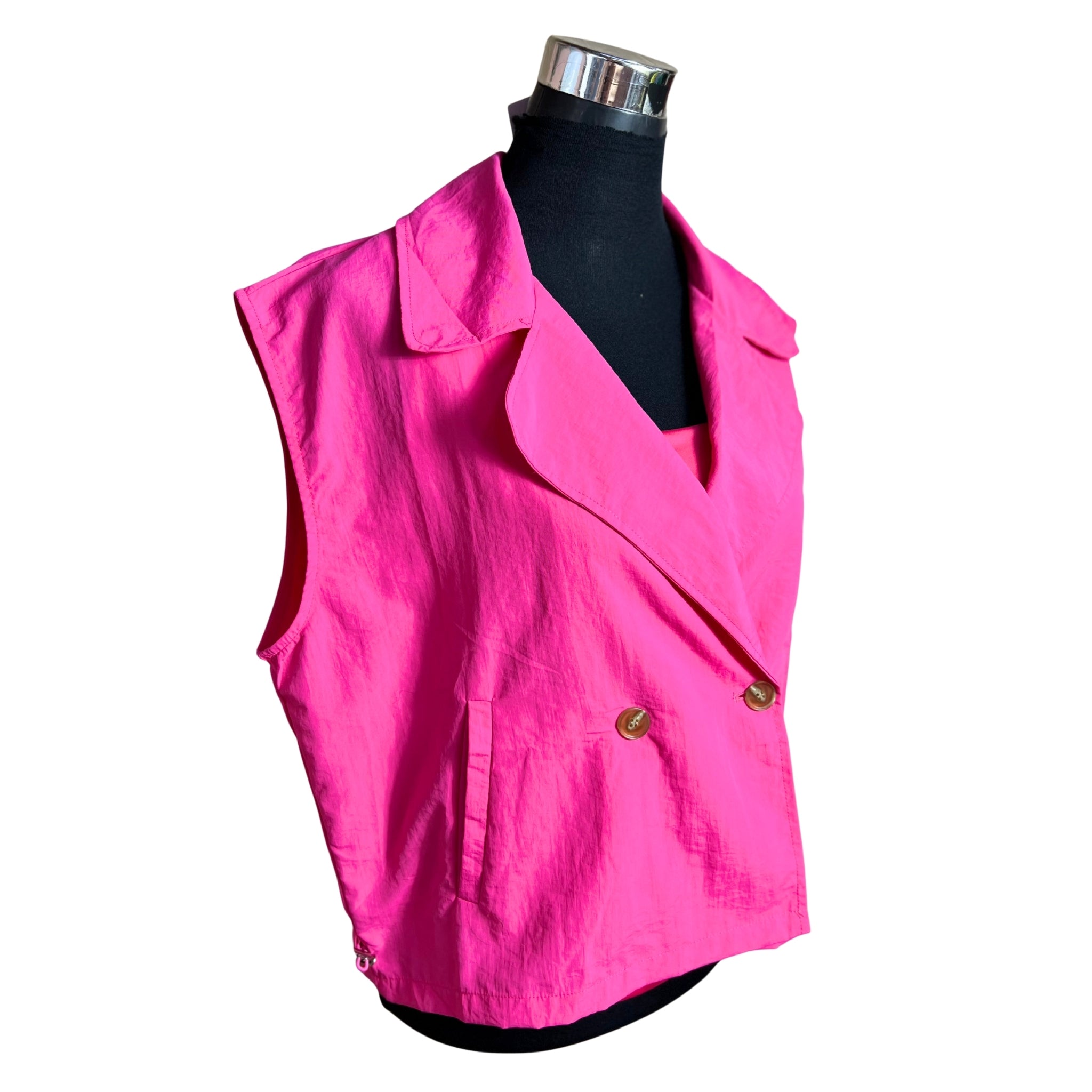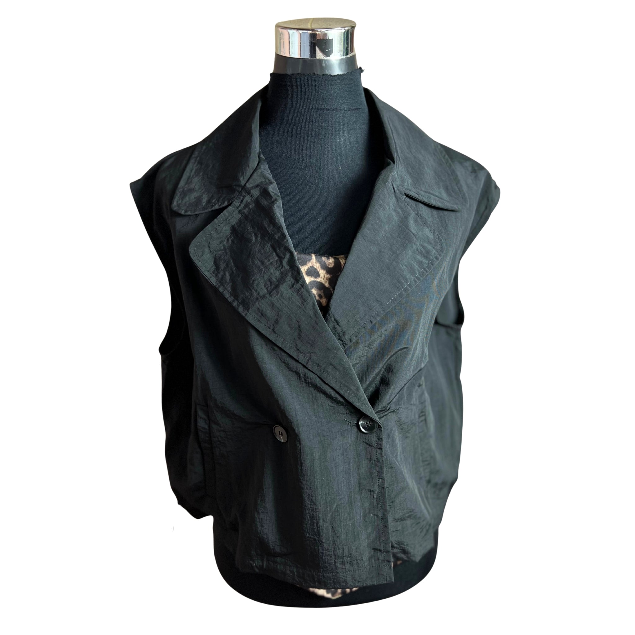 Descubre la elegancia minimalista con esta chaqueta oversize sin mangas que redefine tu estilo. Su corte cruzado proporciona una silueta sofisticada y versátil, mientras que el reductor en la cintura marca tu figura de manera favorecedora. Perfecta para capas sobre cualquier outfit, combina comodidad con un toque de distinción. Una pieza imprescindible que eleva cualquier look, desde casual hasta formal. Invierte en una prenda que trasciende tendencias y se adapta a tu personalidad única.