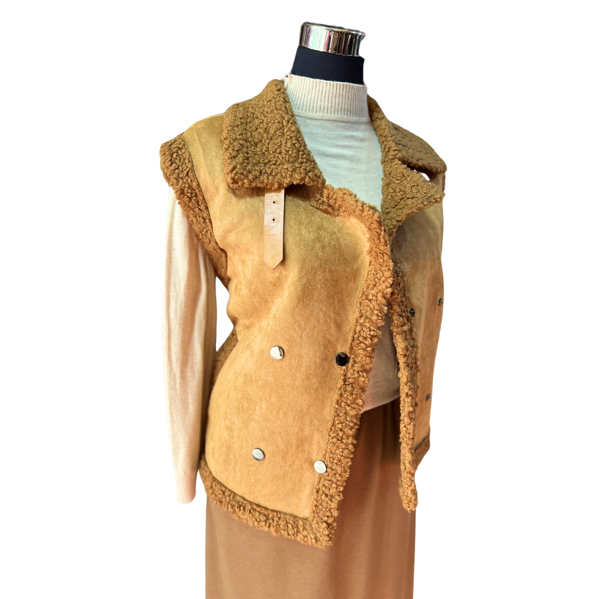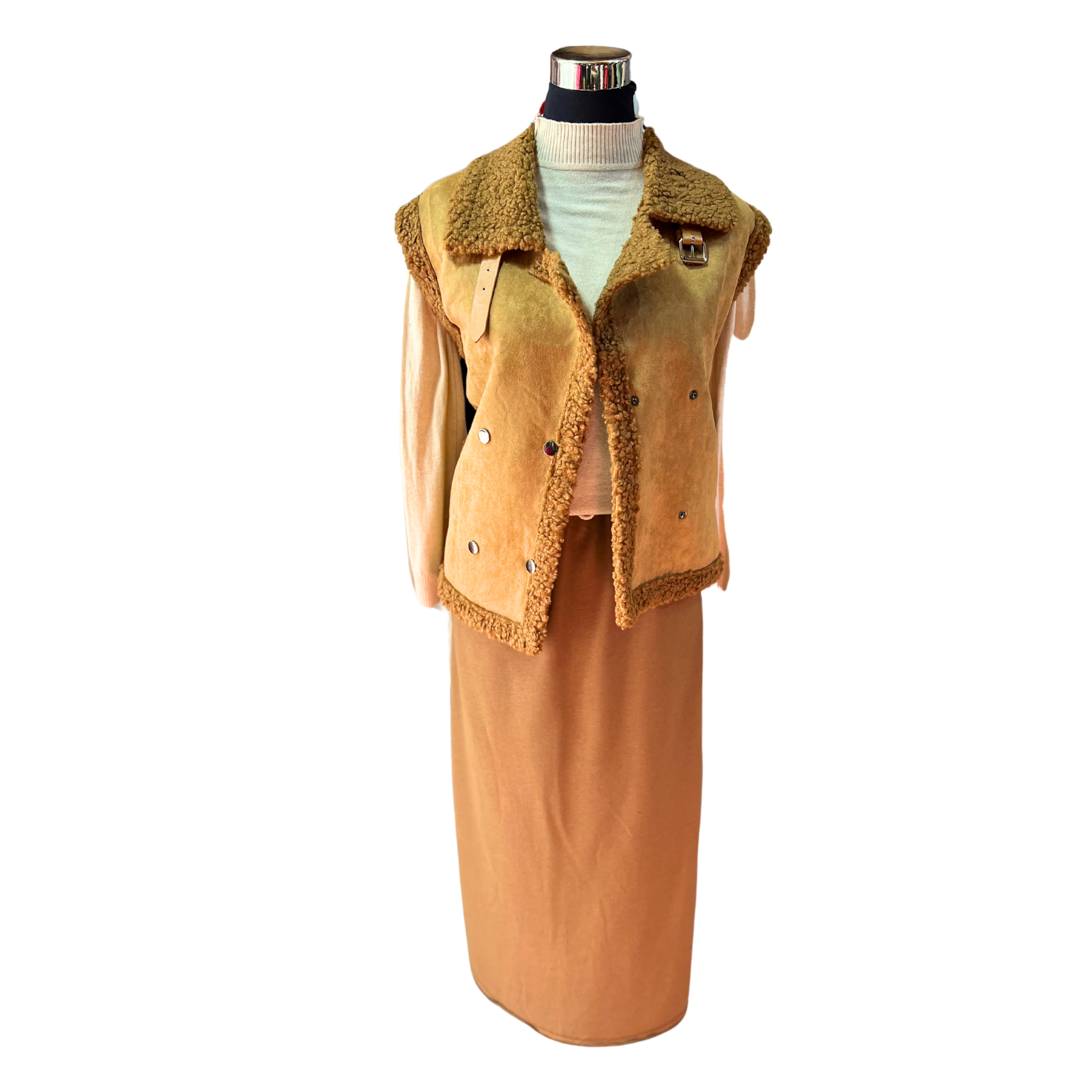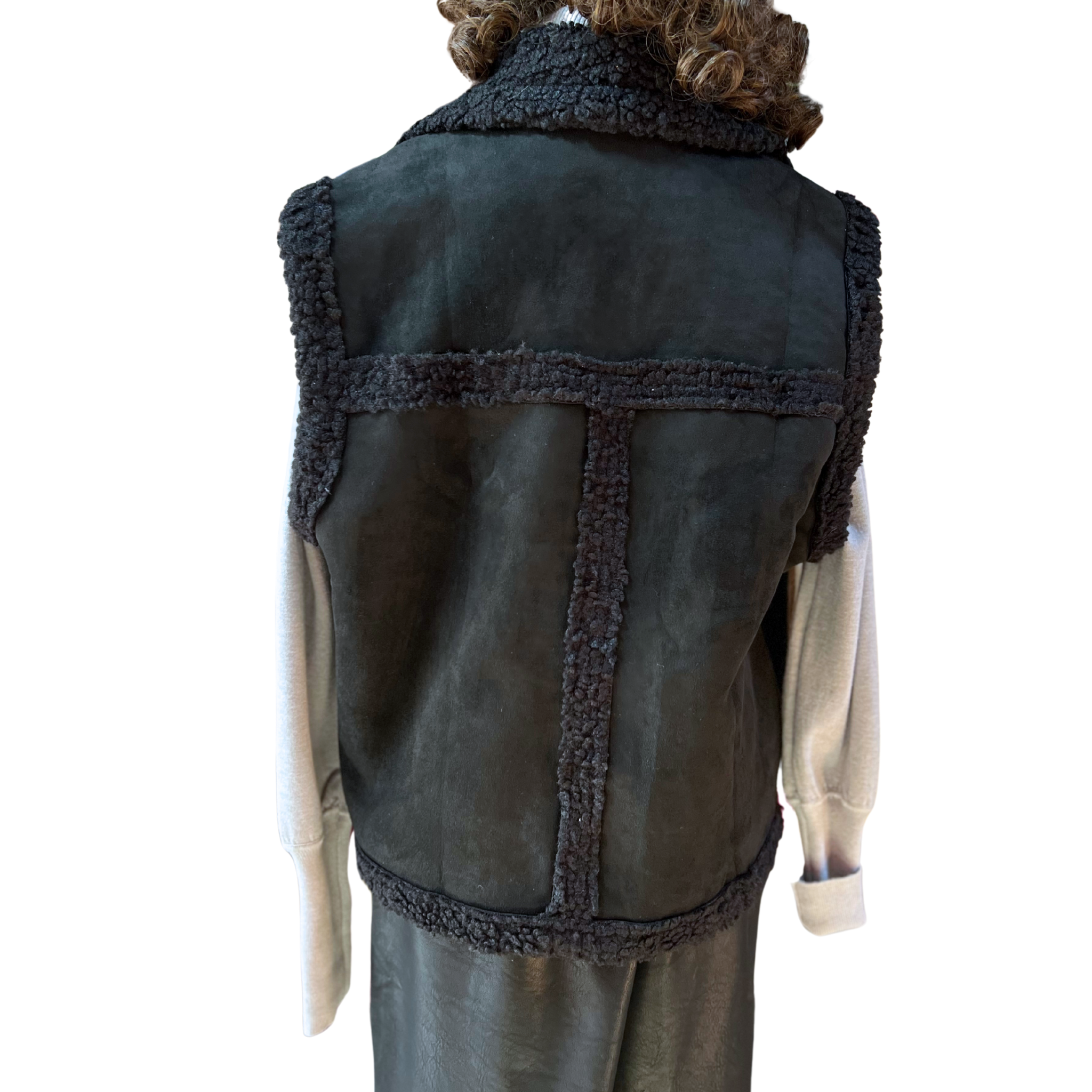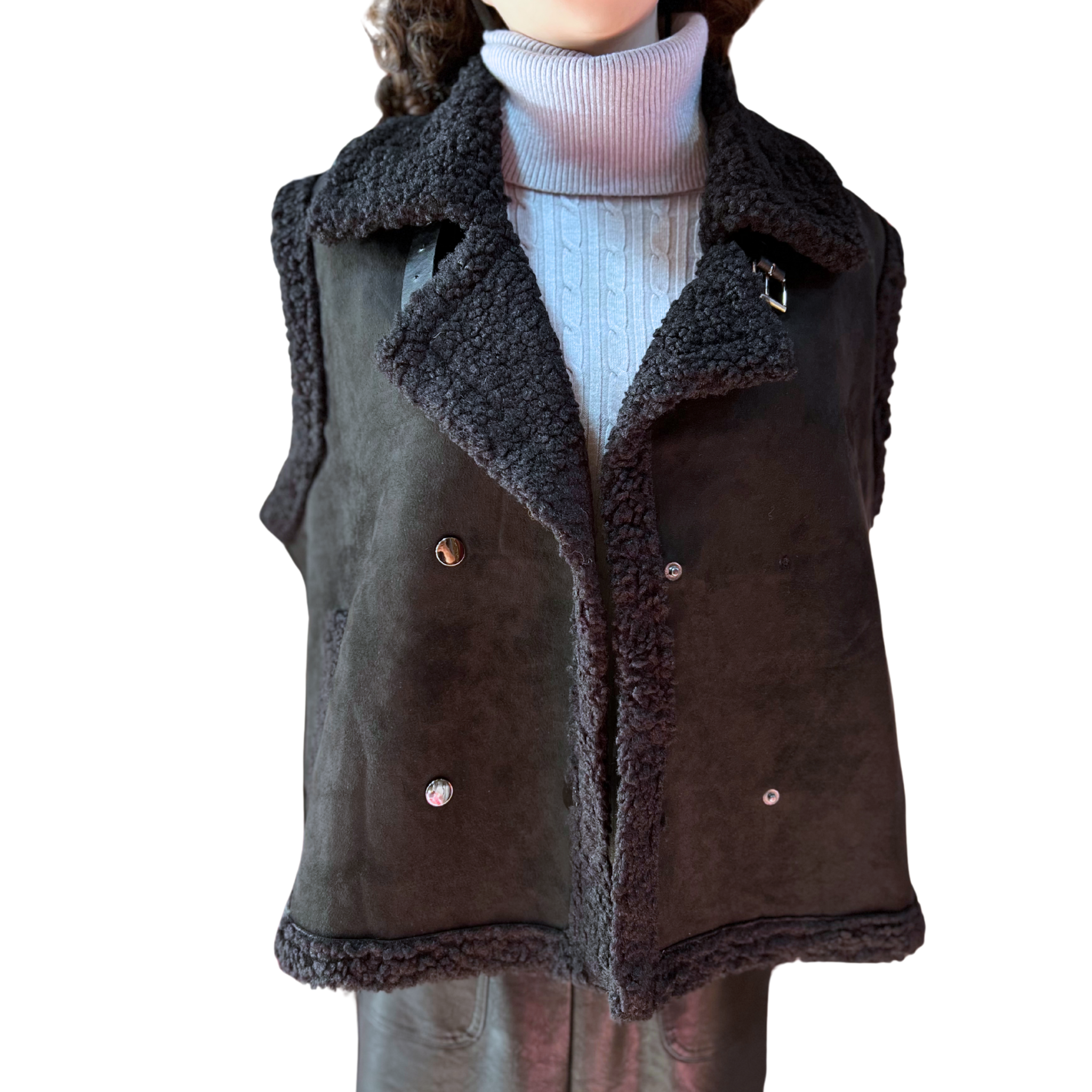 Envuélvete en lujo y calidez con nuestra Chaqueta Sin Mangas De Gamuza Y Corderito. Diseñada para brindar libertad de movimiento mientras mantiene tu torso abrigado, esta prenda combina la elegancia de la gamuza con el confort acogedor del corderito. Perfecta para capas en días frescos o como pieza de transición entre estaciones. ¡Un elemento imprescindible que elevará cualquier conjunto con estilo y funcionalidad!