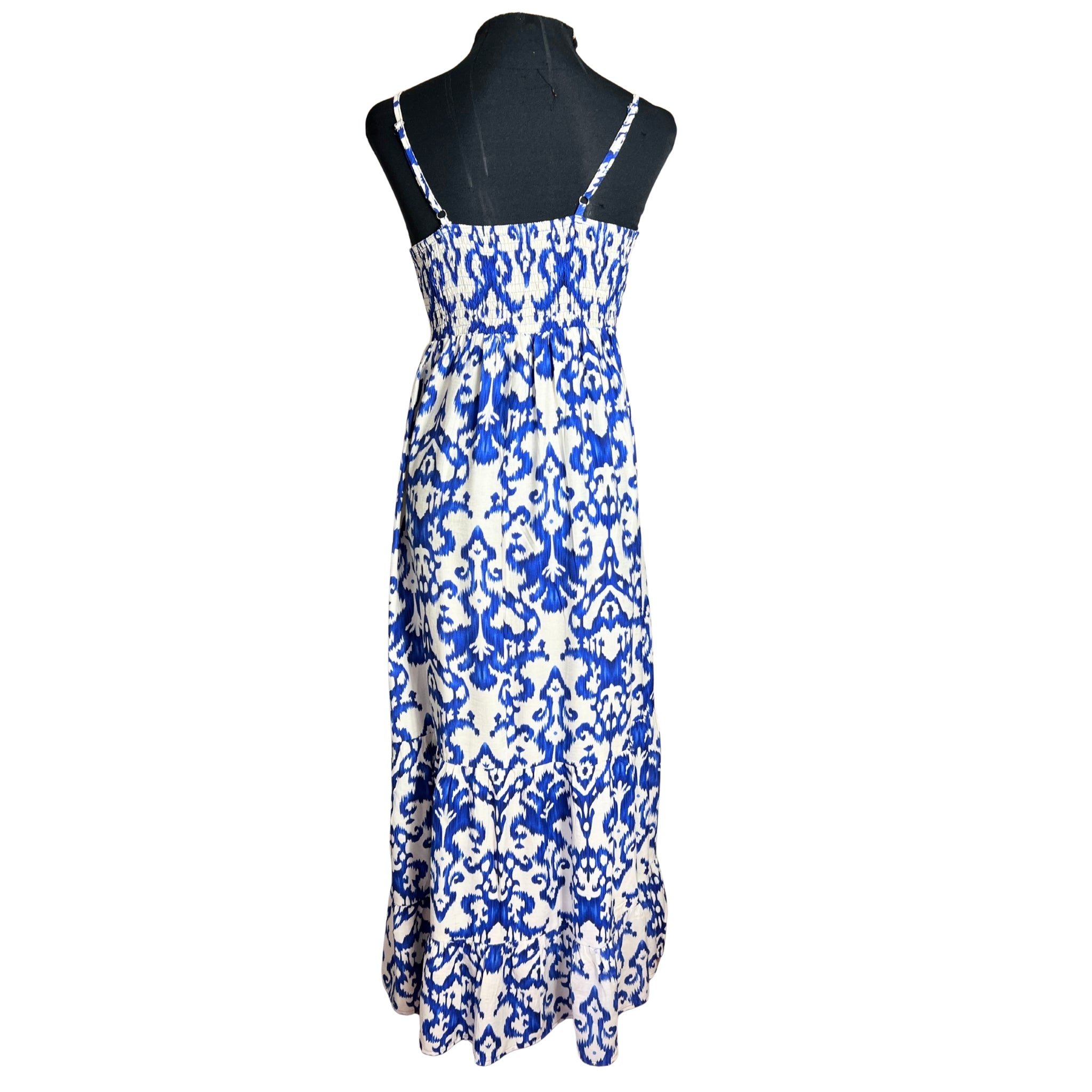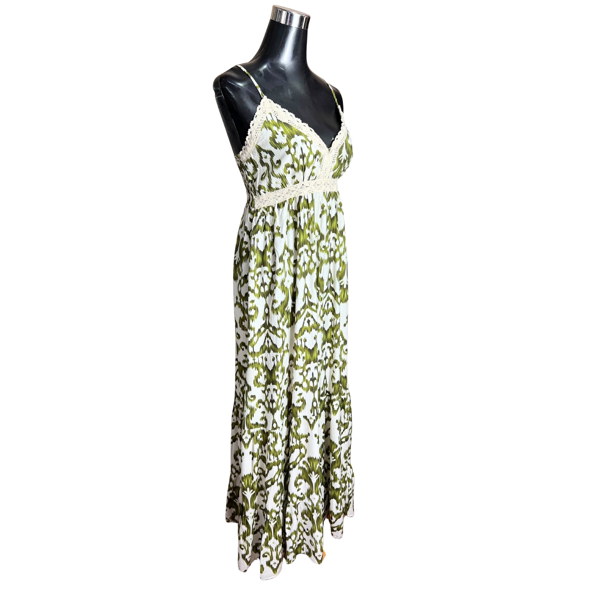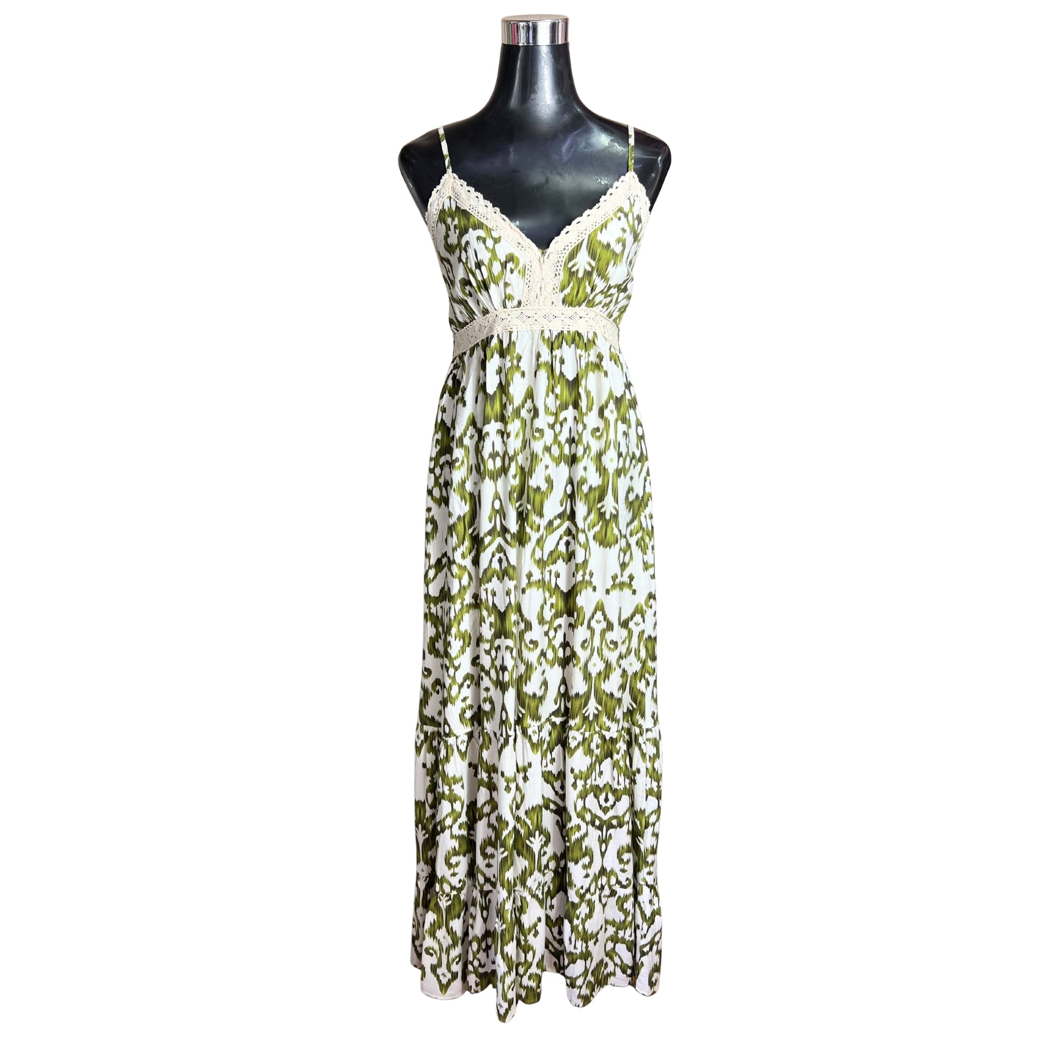 Descubre la elegancia bohemia en este maxi vestido que fusiona tradición y estilo contemporáneo. El estampado Ikat Bombay étnico crea un patrón cautivador que refleja la riqueza cultural de Oriente, mientras que los delicados detalles en crochet añaden textura y sofisticación a cada movimiento. Perfecto para ocasiones especiales o para elevar tu outfit cotidiano, este vestido envolvente te permite lucir radiante con confianza. La caída fluida del tejido favorece tu silueta y proporciona comodidad durante todo el día. Una pieza versátil que trasciende tendencias y se convierte en un favorito atemporal de tu closet.