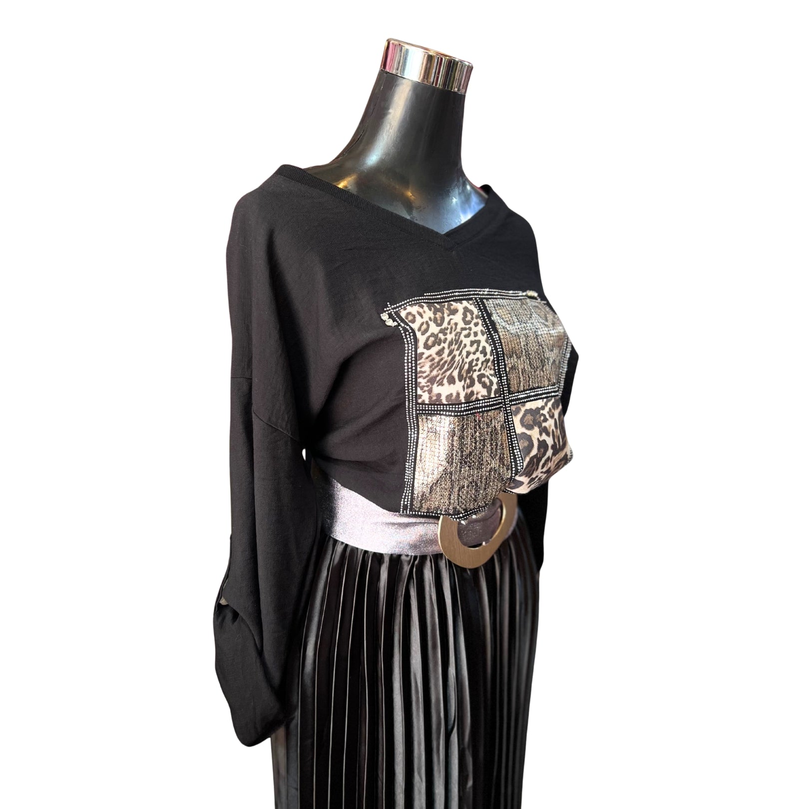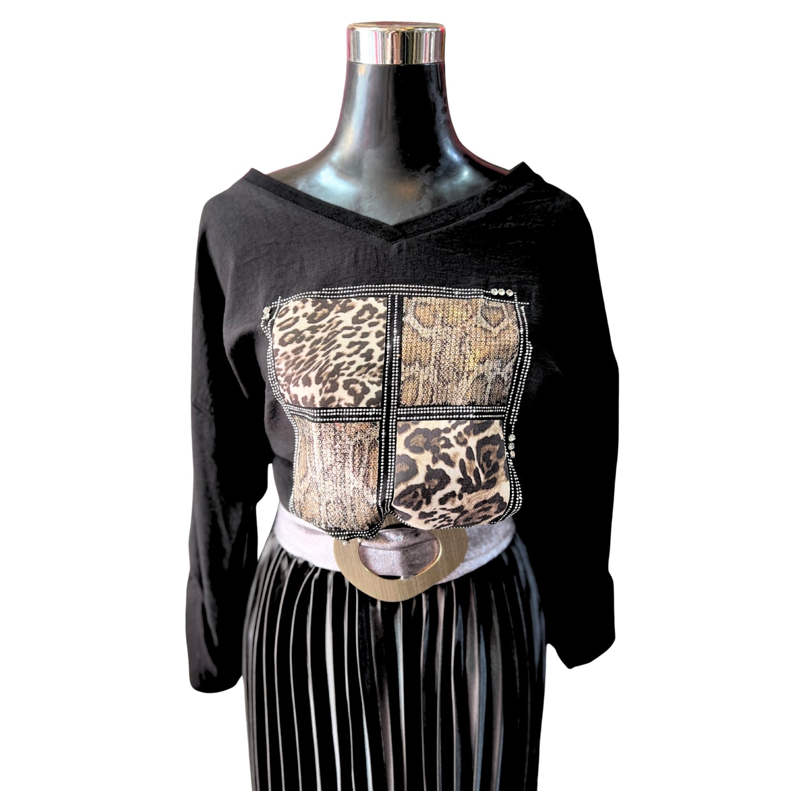 Esta polera de cuadros con animal print combina estilo y comodidad gracias a su mezcla de lino y algodón. Su cuello en V realza la silueta y aporta un toque sofisticado, ideal para lucir en cualquier ocasión. Perfecta para quienes buscan una prenda versátil que destaque por diseño y frescura durante todo el día.