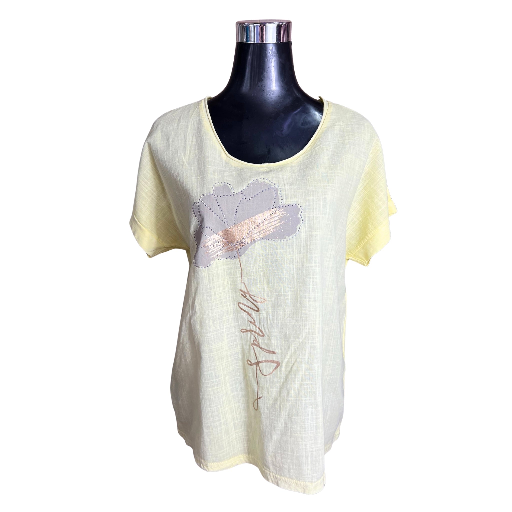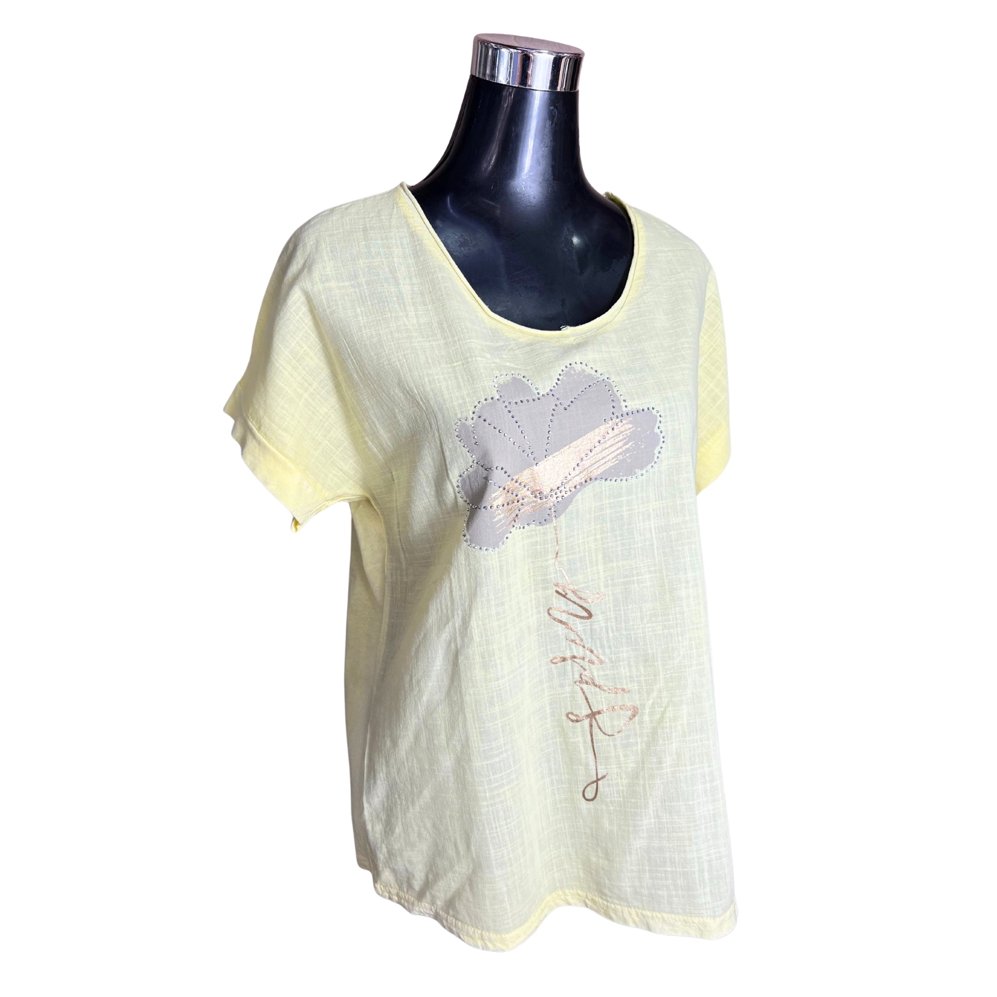 Polera confeccionada en una delicada mezcla de lino y algodón que ofrece comodidad y transpirabilidad perfecta para la temporada. Destaca por su diseño exclusivo con flor pintada a mano y detalles de tachas que le dan un toque sofisticado y moderno. Ideal para quienes buscan prendas versátiles que combinen estilo casual con elegancia. Una pieza imprescindible que eleva cualquier outfit de primavera con su acabado único y de calidad premium.