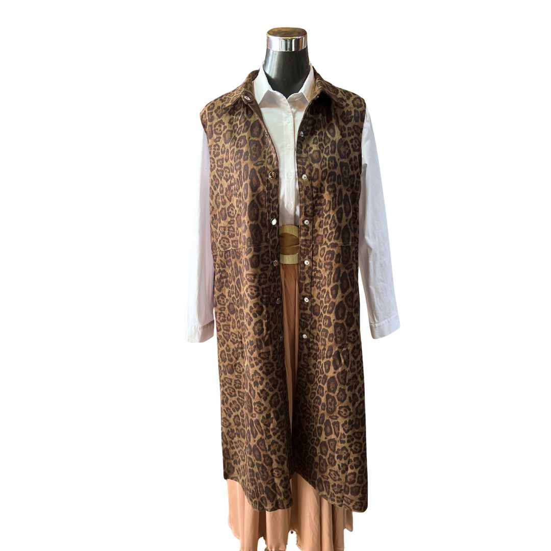 Este tapado sin mangas en gamuza con estampado animal print es la prenda perfecta para destacar tu estilo con un toque audaz y sofisticado. Su diseño sin mangas ofrece comodidad y libertad de movimiento, mientras que los broches añaden un detalle funcional y elegante. Ideal para combinar con diferentes outfits, este tapado te brinda versatilidad y un acabado moderno que realza cualquier outfit. Atrévete a lucir única y con personalidad en cada ocasión.