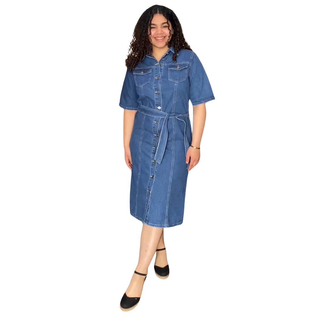 ¡Conviértete en la reina del estilo con nuestro Vestido De Mezclilla Abotonado Con Lazo! Confeccionado en mezclilla de alta calidad, este vestido es perfecto para cualquier ocasión. Su diseño abotonado y lazo estilizan tu figura y le dan un toque único a tu look.