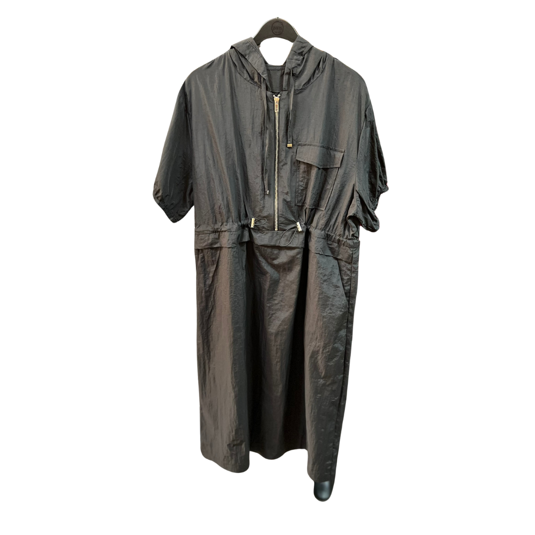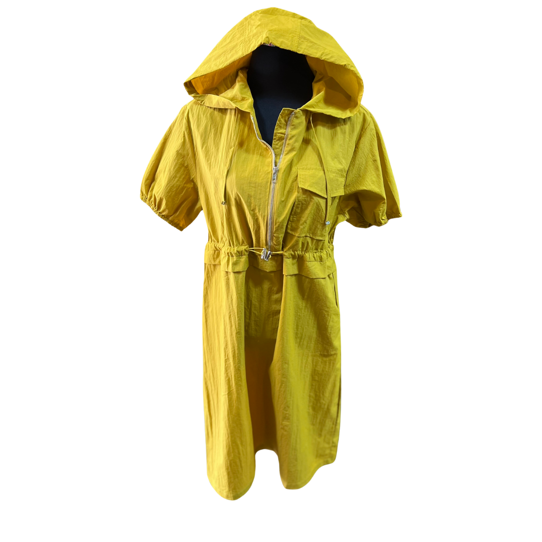 Vestido de tela Parachute con gorro y cierre. Disfruta de la comodidad y ligereza de este vestido mientras te proteges del clima. ¡Perfecto para actividades al aire libre o simplemente para estar en casa con estilo y confort! ¡Consigue el tuyo hoy!